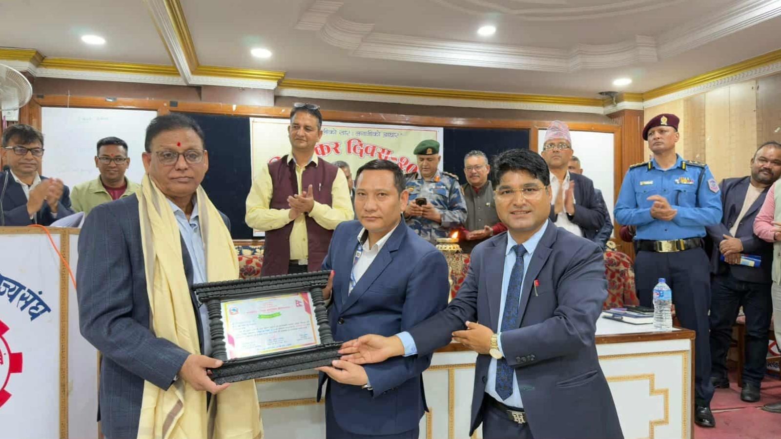 आन्तरिक राजश्व कार्यालय नेपालगन्जले आज राष्ट्रिय कर दिवस २०८२ को अवसरमा वेष्टर्न हस्पिटल प्रालिलाई सम्मान गरेको हो । बाँकेका प्रमुख जिल्ला अधिकारी दिलकुमार तामाङ र आन्तरिक राजश्व कार्यालय नेपालगन्जका प्रमुख पूर्णप्रसाद न्यौपानेले दोसल्ला ओढाएर सम्मान गरेका हुन् । हस्पिटलका संचालक डा. विनोद कुमार थापाले सम्मान ग्रहण गरेका हुन् ।