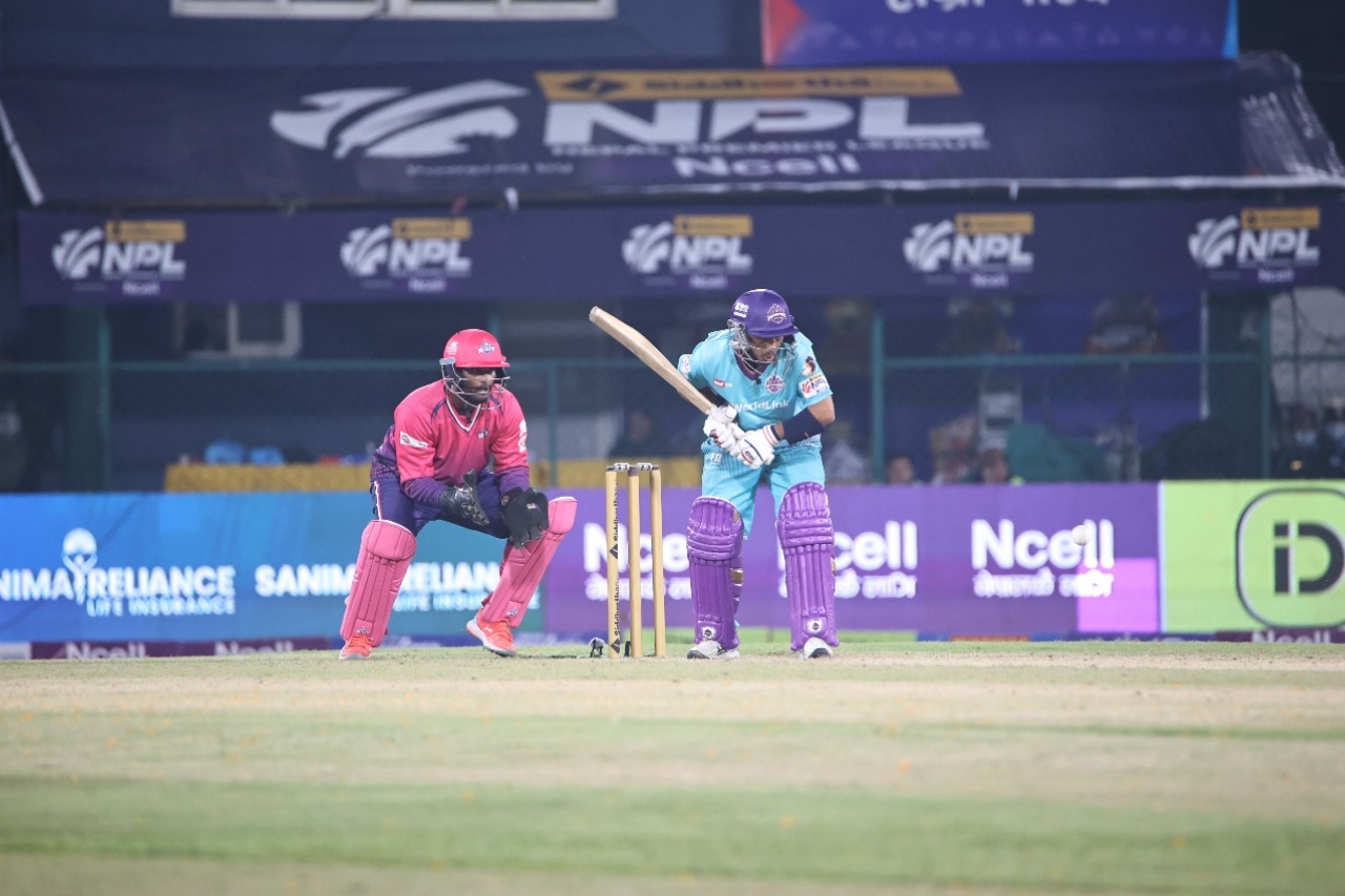 जवाफमा काठमाडौँले १८ ओभरमै ५ विकेटको क्षतिमा जित हासिल गर्यो । काठमाडौँका लागि बेन चार्लस्वर्थले २३ बलमा ४६ तथा आकाश त्रिपाठीले ४५ बलमा ३९ रन जोडे । अलराउन्डर मिलिन्द कुमारले २२ बलमा १९ रन जोडे । जोन सिम्पसनले ६ बलमा १३ रन जोडे ।