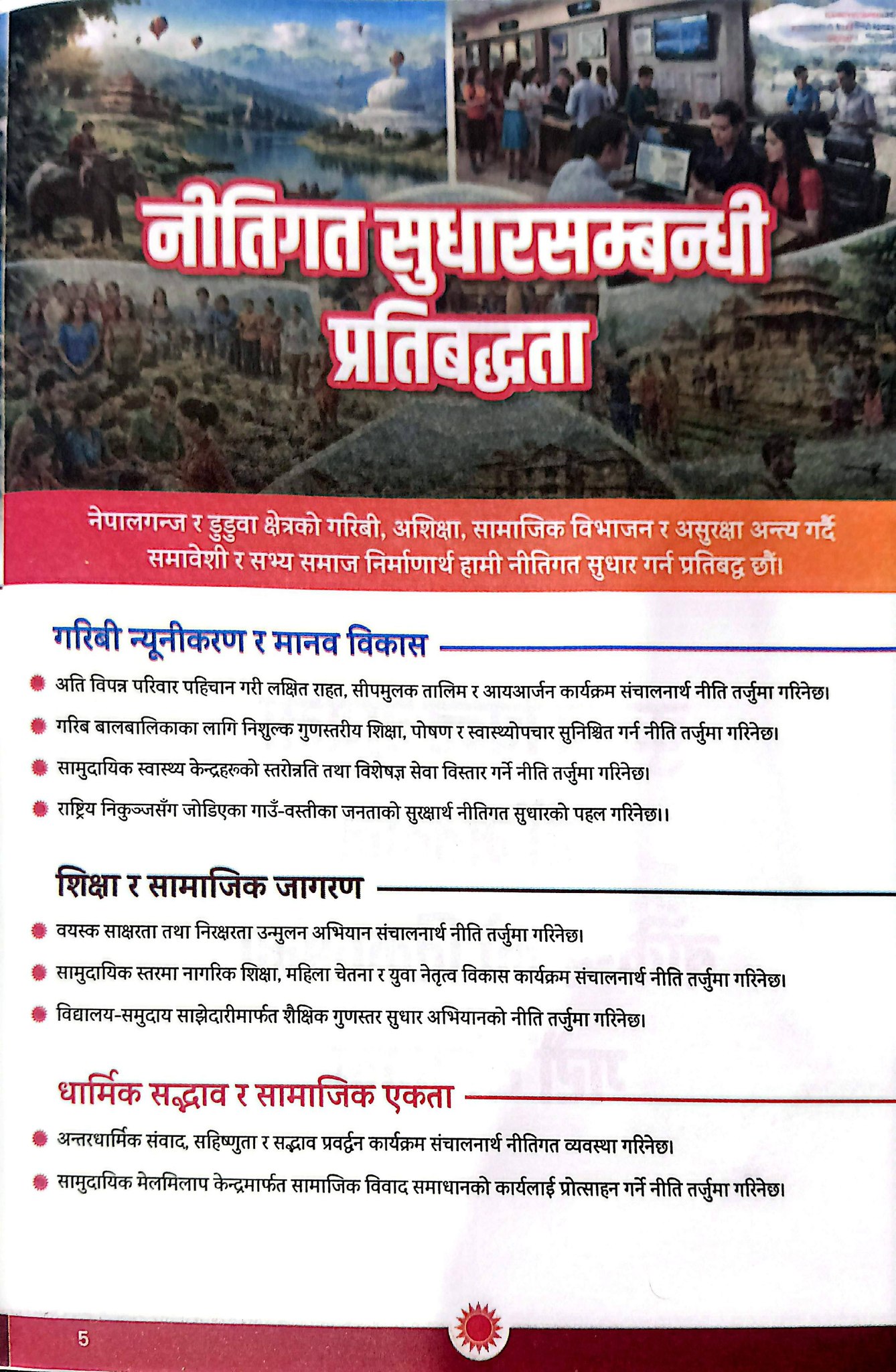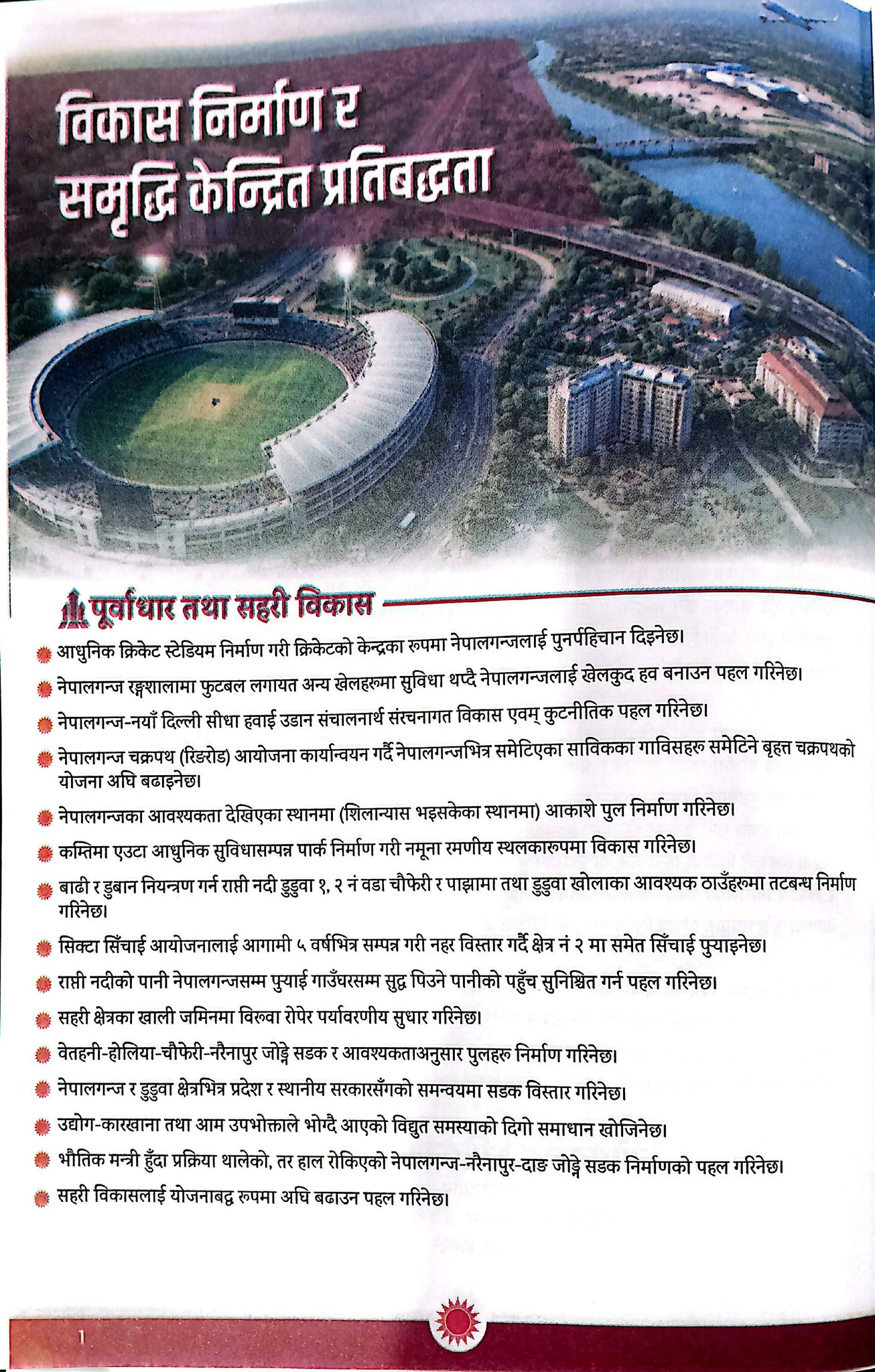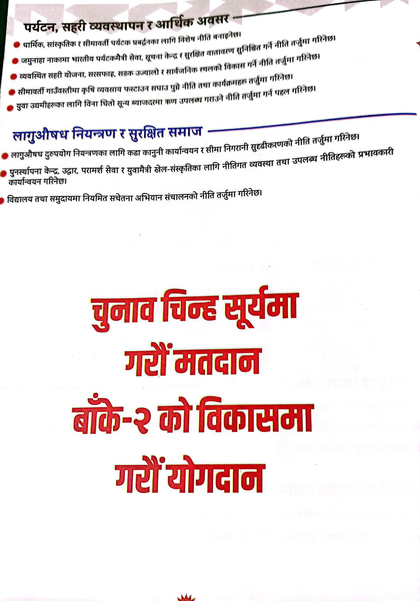 उनले नेपालगञ्जलाई शिक्षा, स्वास्थ्य, खेलकुद, उद्योगको हब बनाएर चलायमान सहरका रुपमा विकास गर्न आफू प्रतिबद्ध रहेको बताए । आफूले विगतमा सांसद र मन्त्रीको भूमिकामा रहँदा विकास निर्माणका काम गरेर देखाएको स्मरण गराउँदै उनले फेरि पनि जनताबाट अनुमोदित भएर नेपालगञ्ज डुडुवाको समृद्धिका लागि काम गर्ने बताए ।