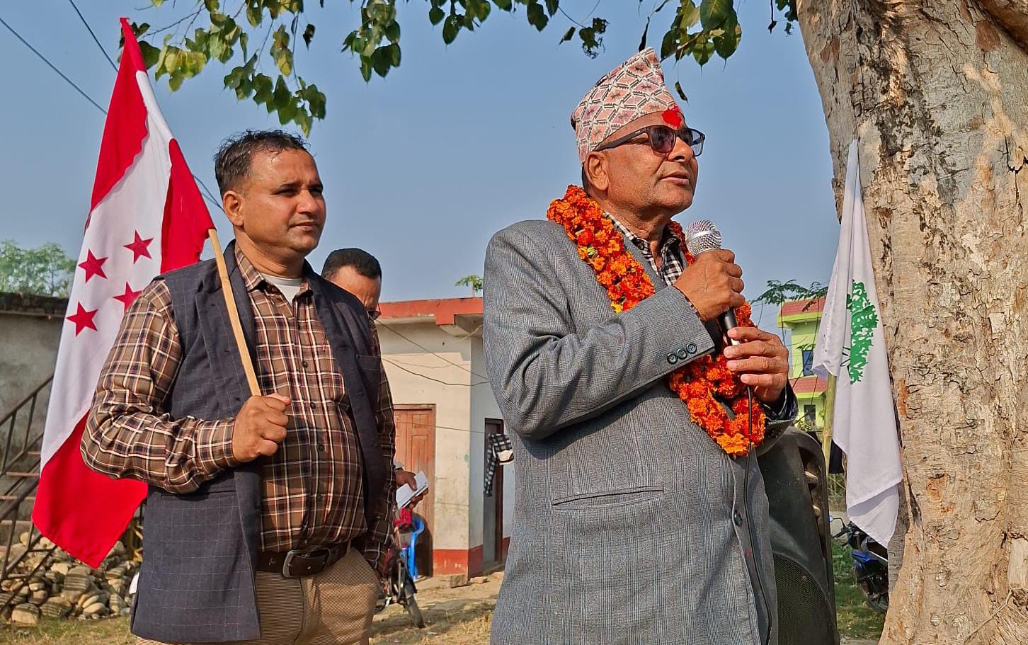 कोहलपुर। बाँके क्षेत्र नं.१ का नेपाली काँग्रेसका उम्मेदवार नारायण प्रसाद गौडेल मतदाताको घरदैलोमा पुग्ने प्रयासमा व्यस्त छन् । तर समयको अभावका कारण सबै मतदातासम्म पुग्न नसकिएको बताउँदै उनले मतदातालाई आफूलाई सम्झेर ‘रुख’ चिन्हमा मतदान गर्न आग्रह गरेका छन् । कोहलपुर नगरपालिका–१२ अन्तर्गत निबुवामा बुधवार आयोजित चुनावी सभामा बोल्दै गौडेलले आफूले प्रत्येक घरमा पुग्ने चाहना राखे पनि चुनावी व्यस्तताले त्यो सम्भव नभएको बताए ।